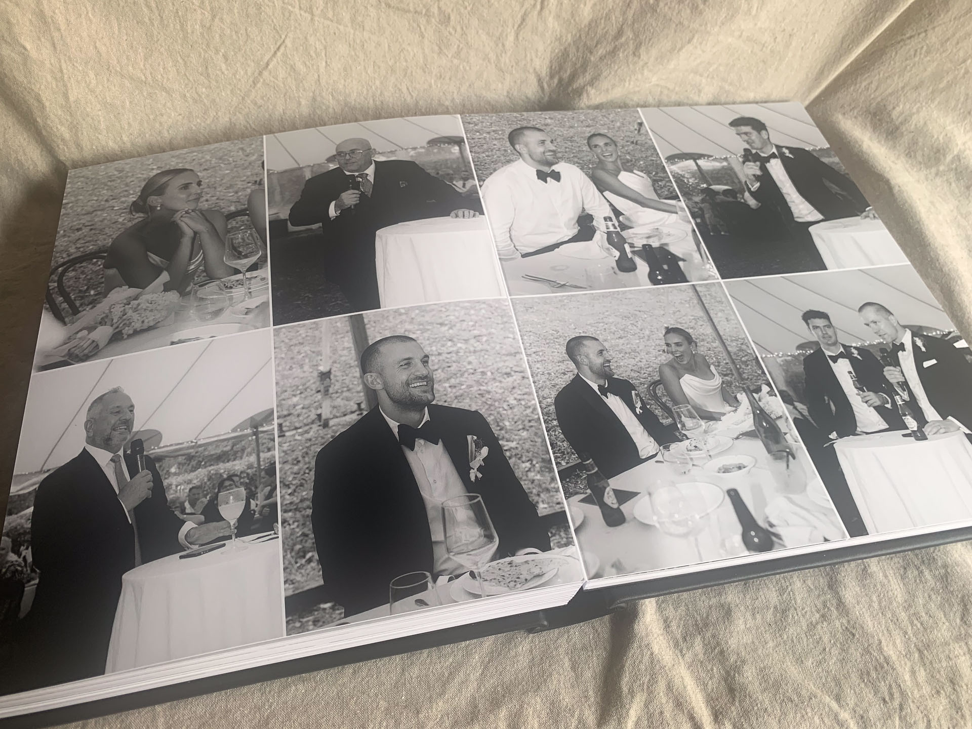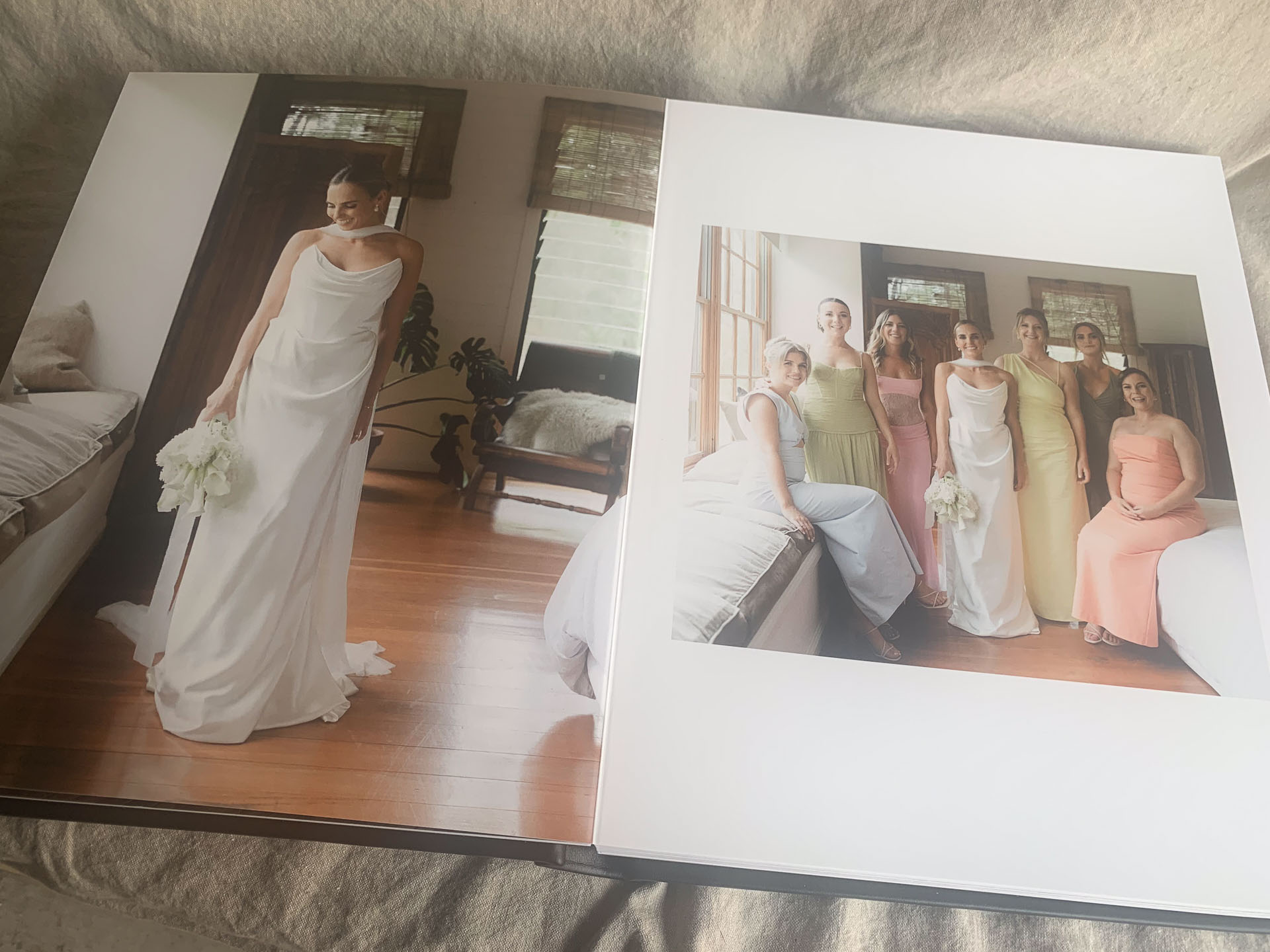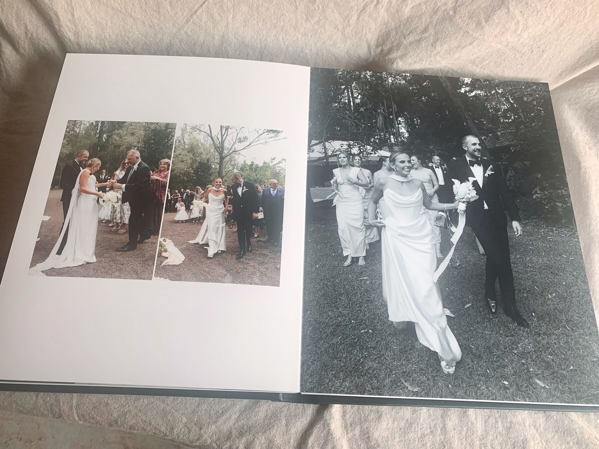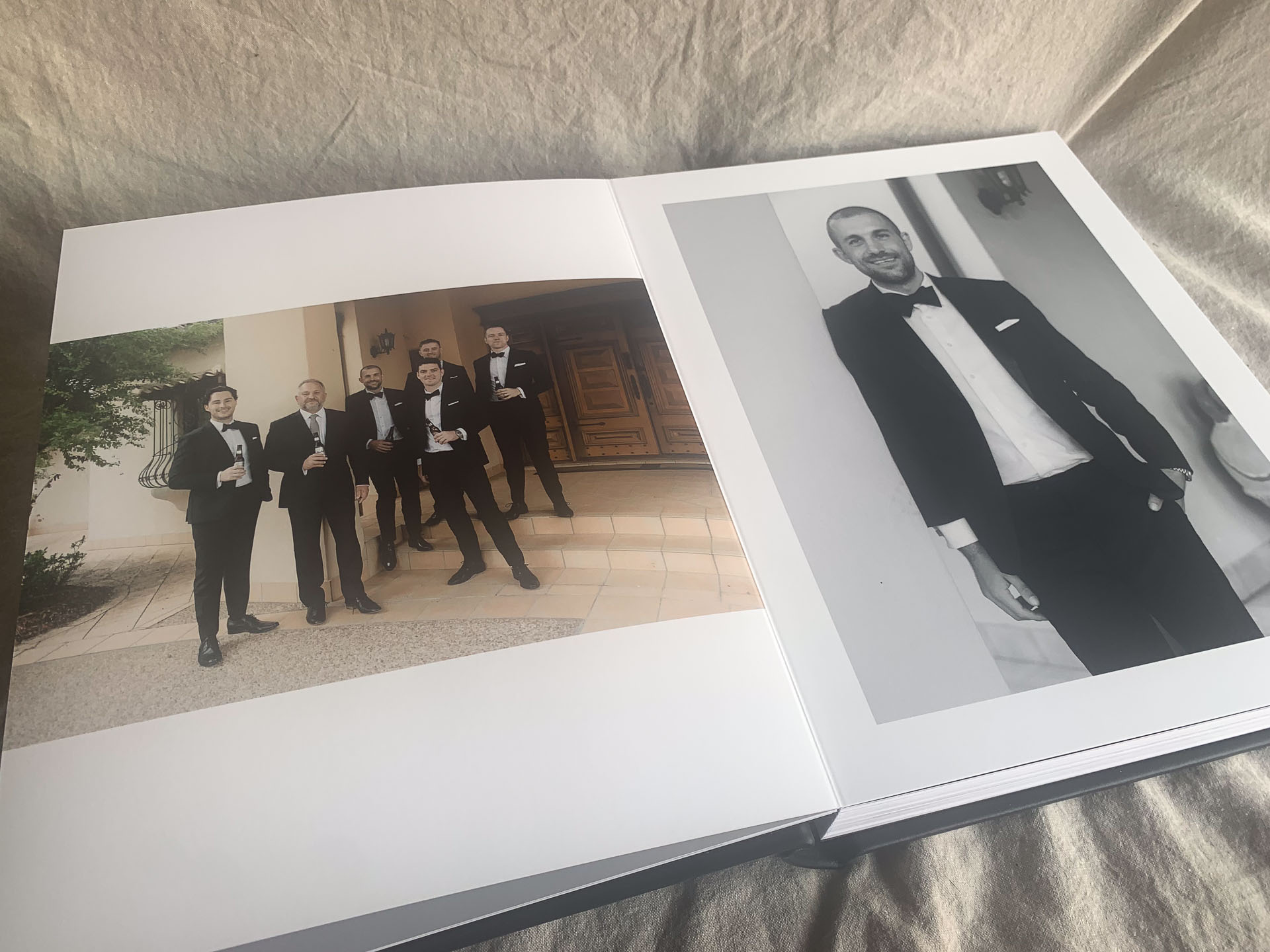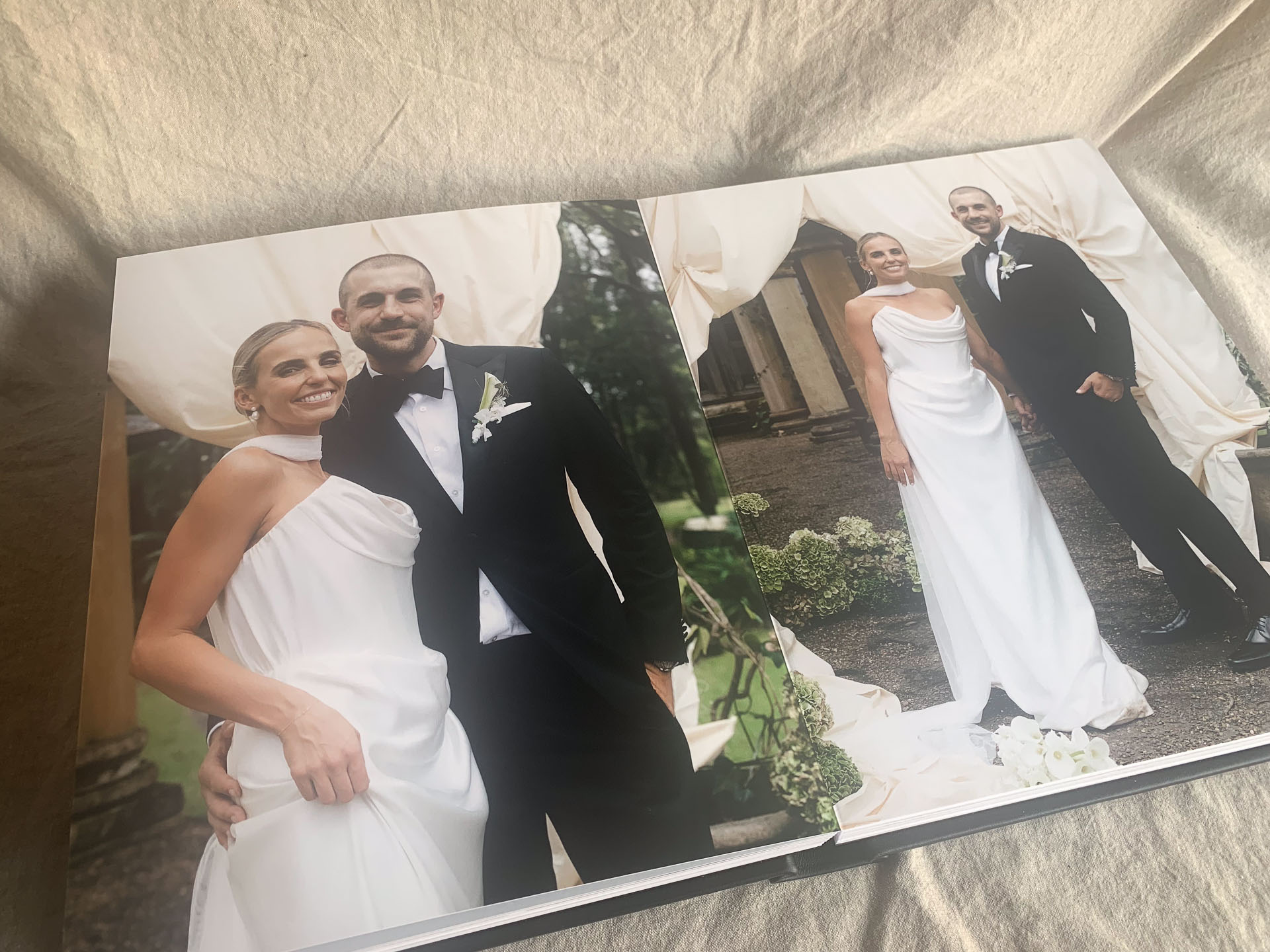 Personalised with your names on the cover and your initials + wedding date on the spine. The perfect blend of editorial design and timeless craftsmanship.