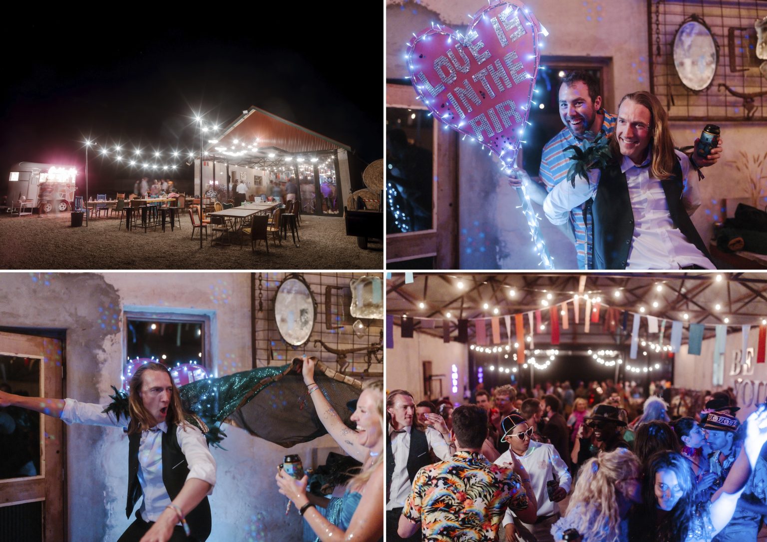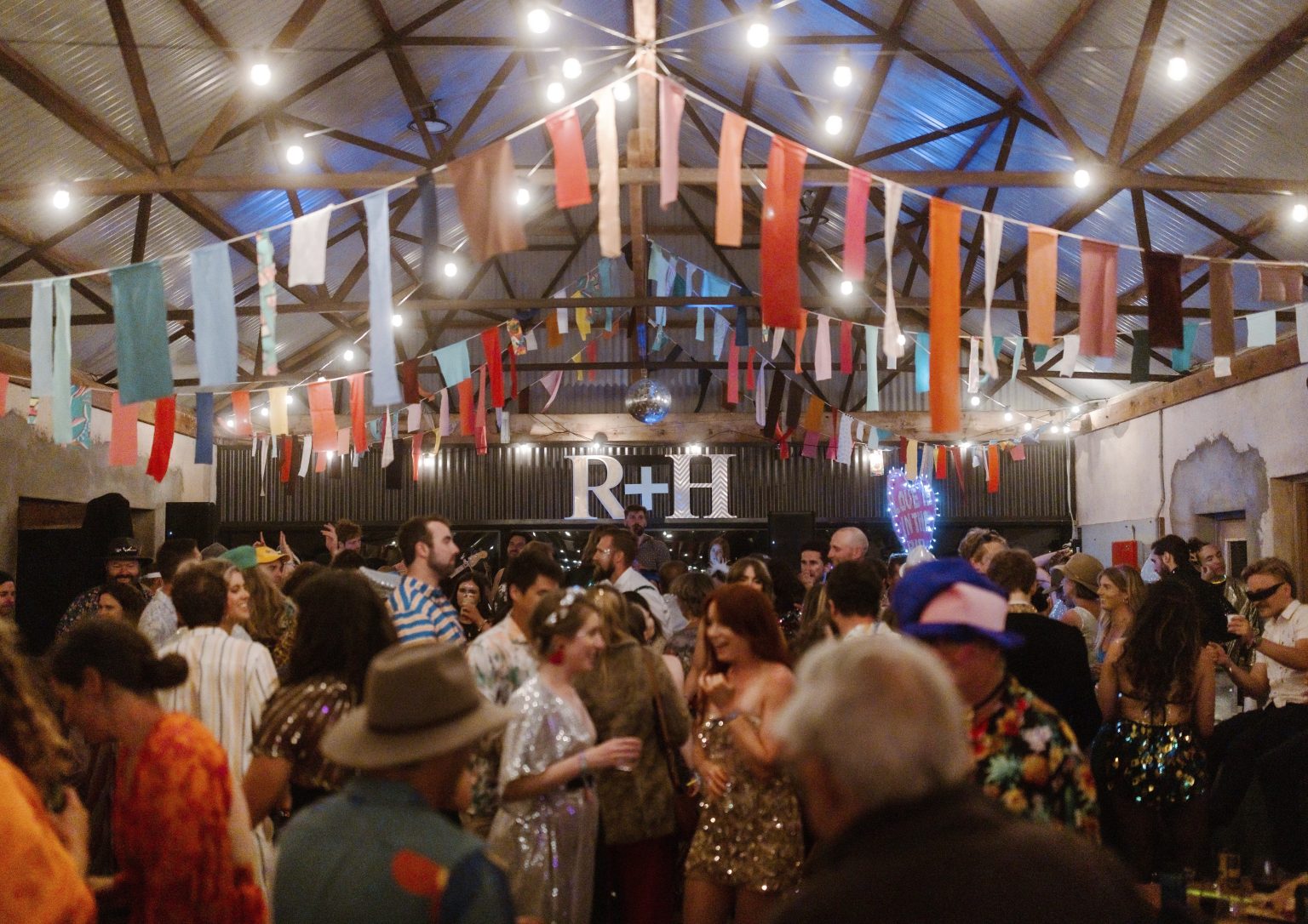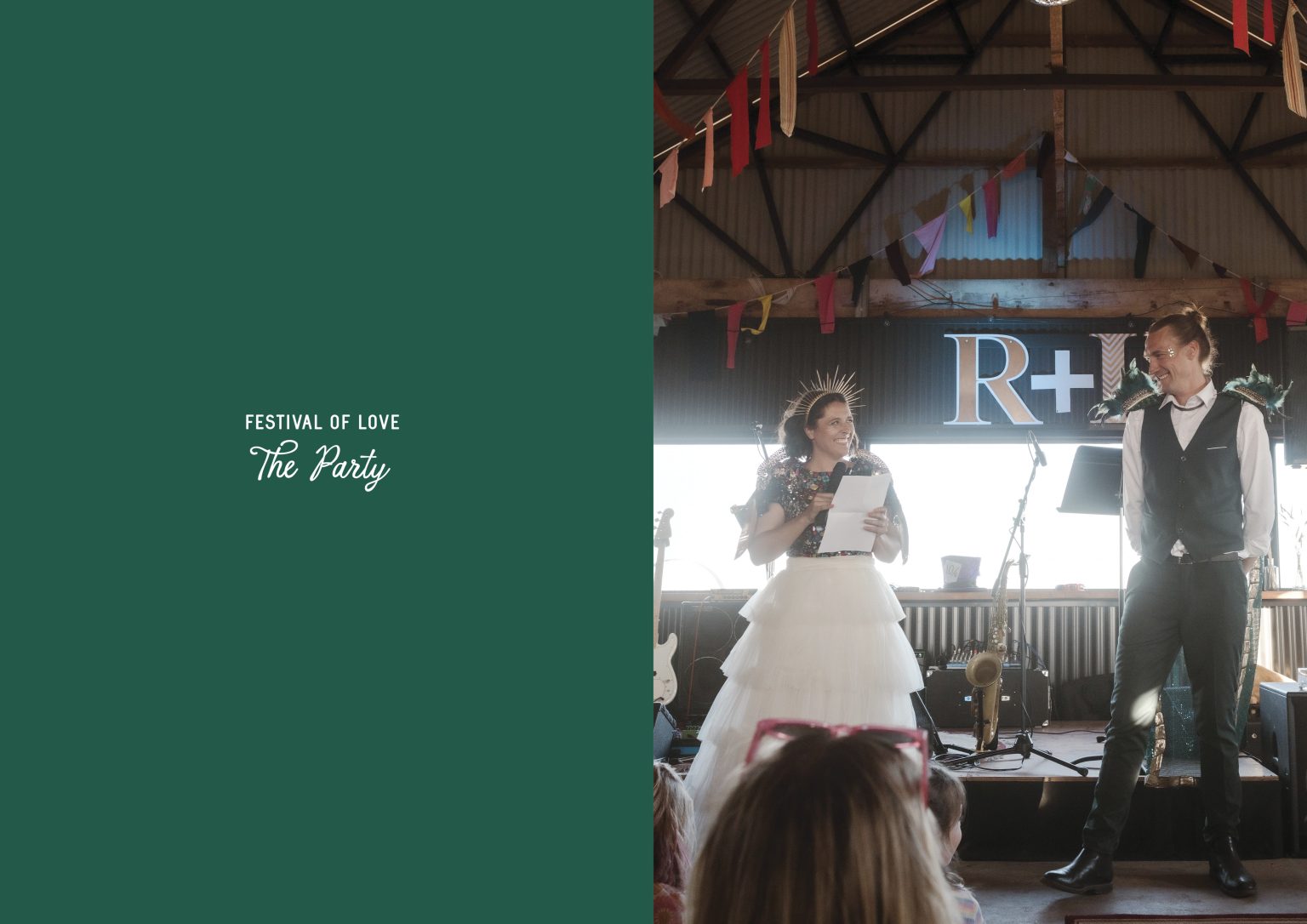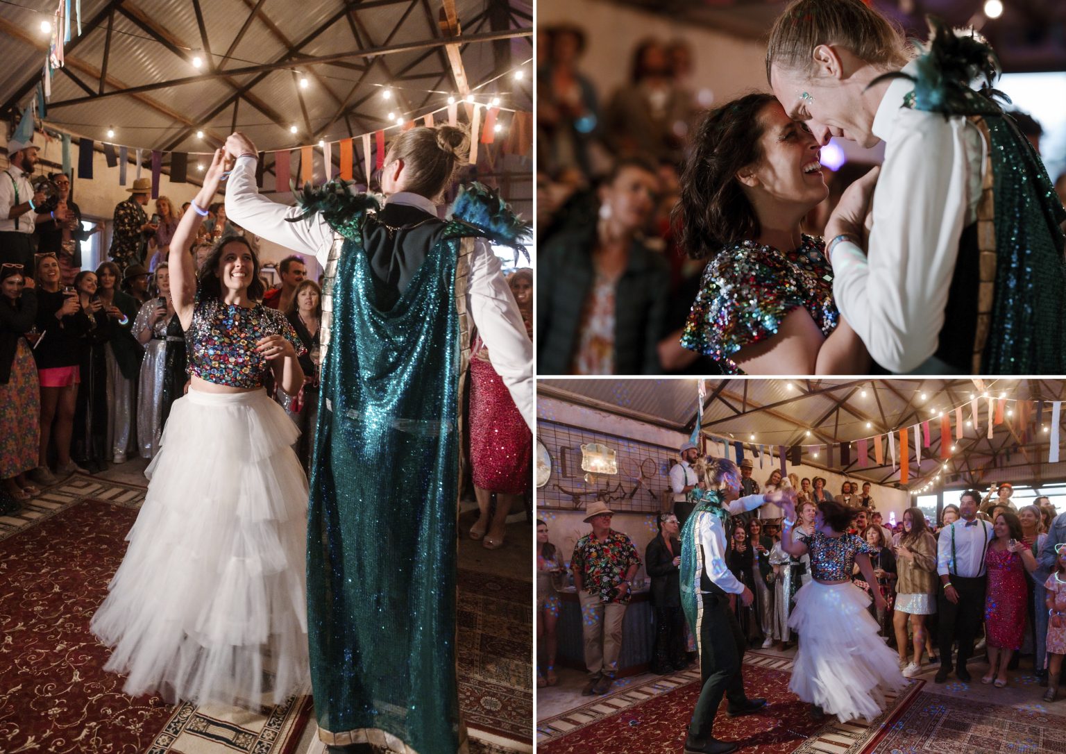 For day two celebrations, Renee & Heath asked their guests to dress for a festival — bright colour, sparkles (they even had a glitter station for those needing a top up) and good times. They created a colourful, joy-filled celebration and a festival of love.