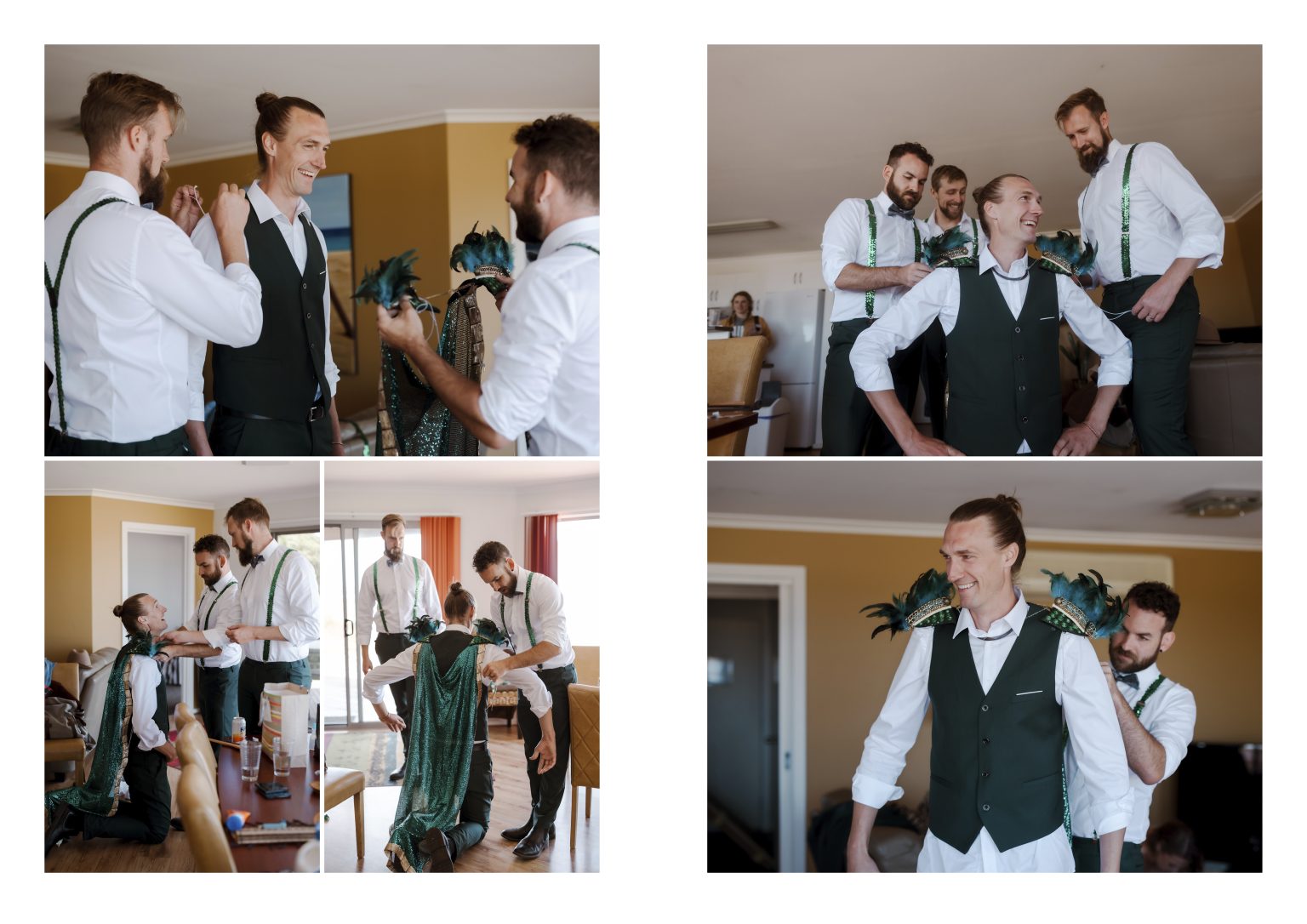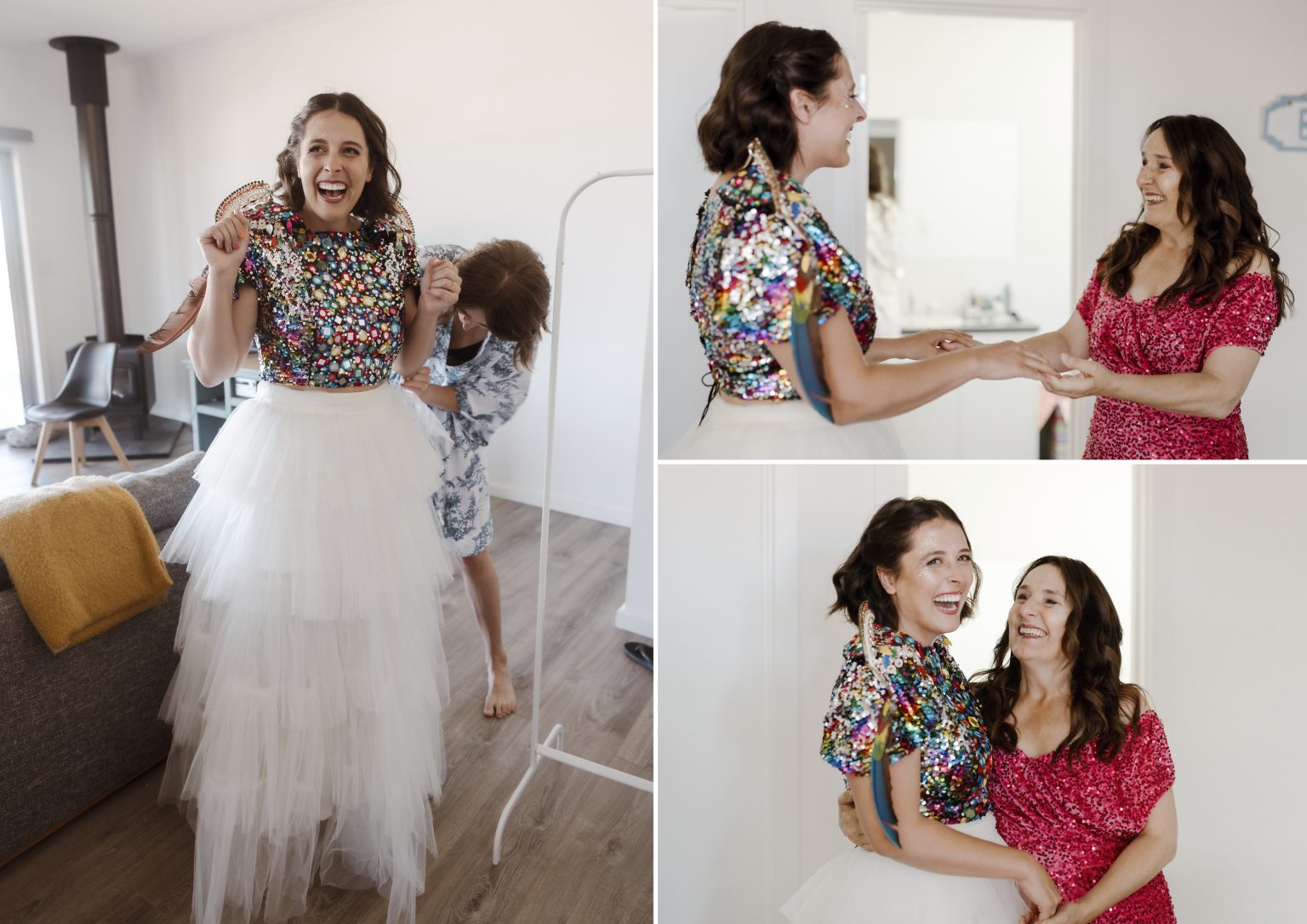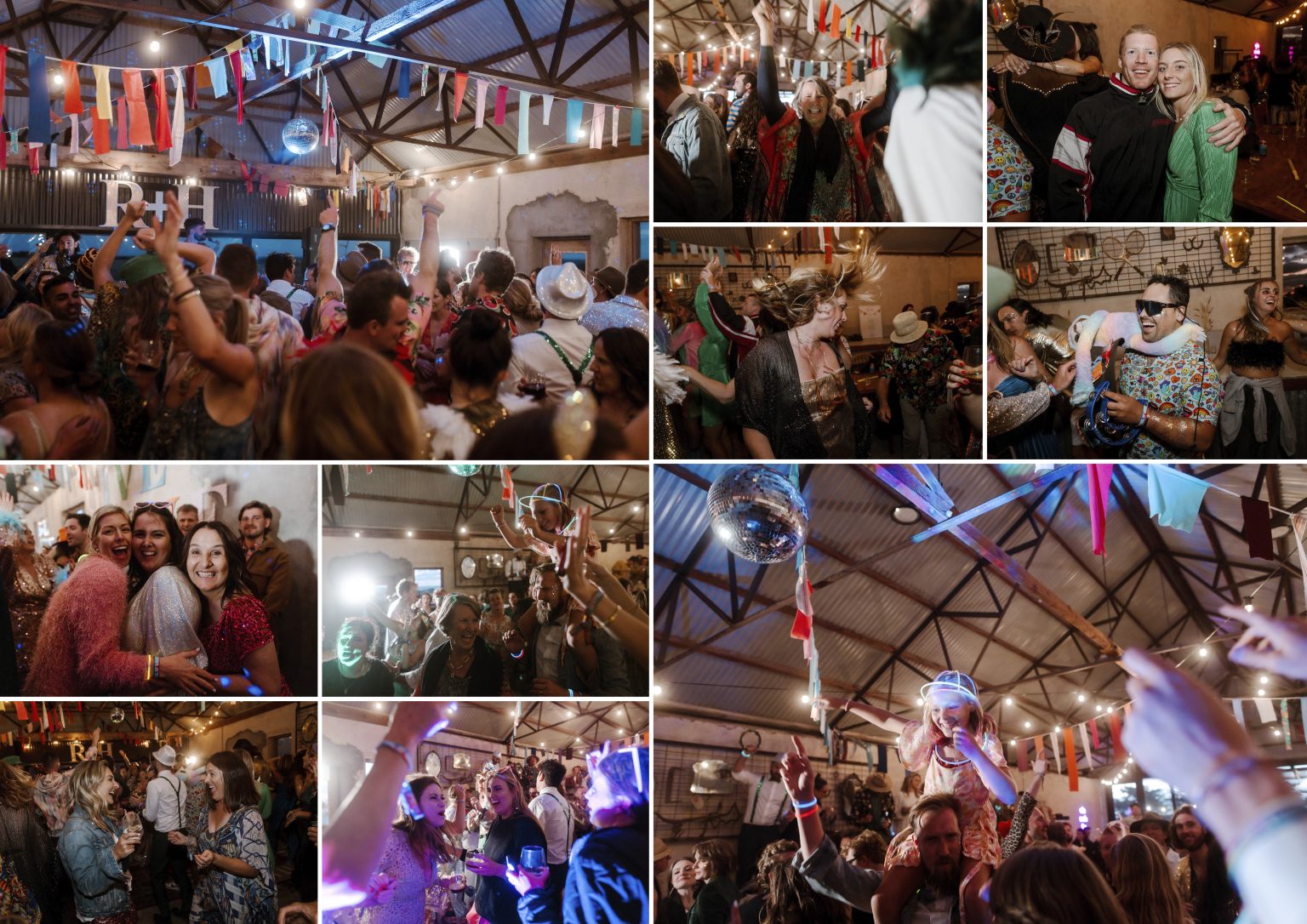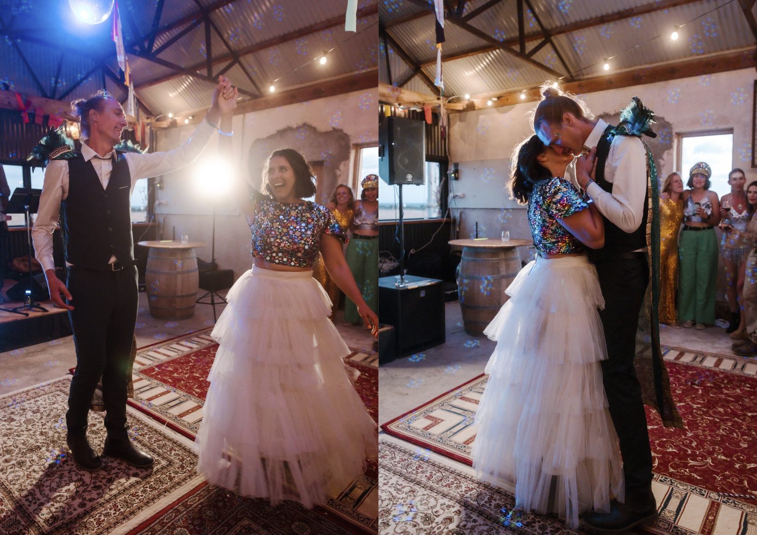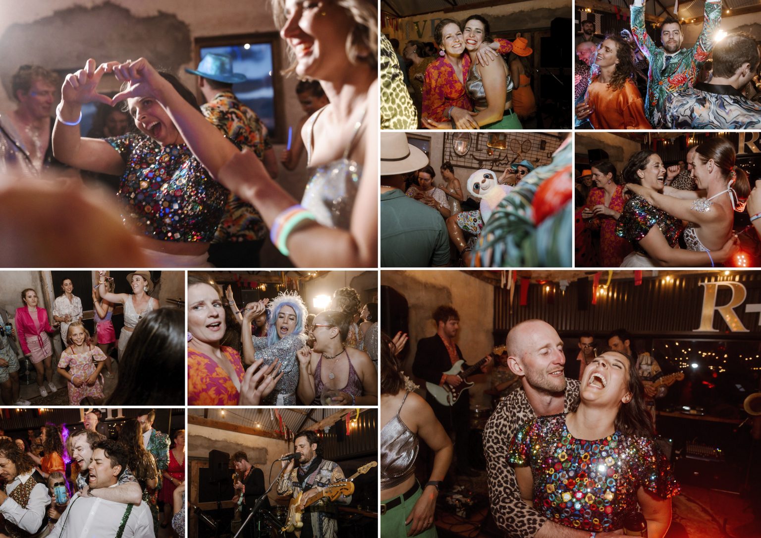For day two celebrations, Renee & Heath asked their guests to dress for a festival — bright colour, sparkles (they even had a glitter station for those needing a top up) and good times. They created a colourful, joy-filled celebration and a festival of love.