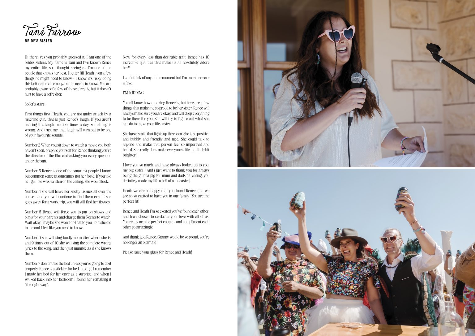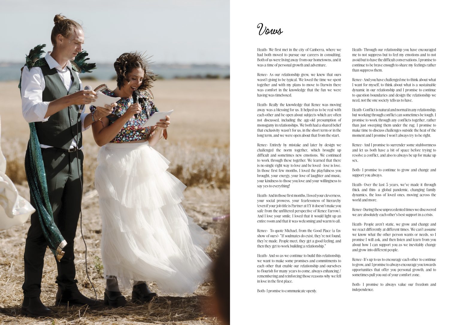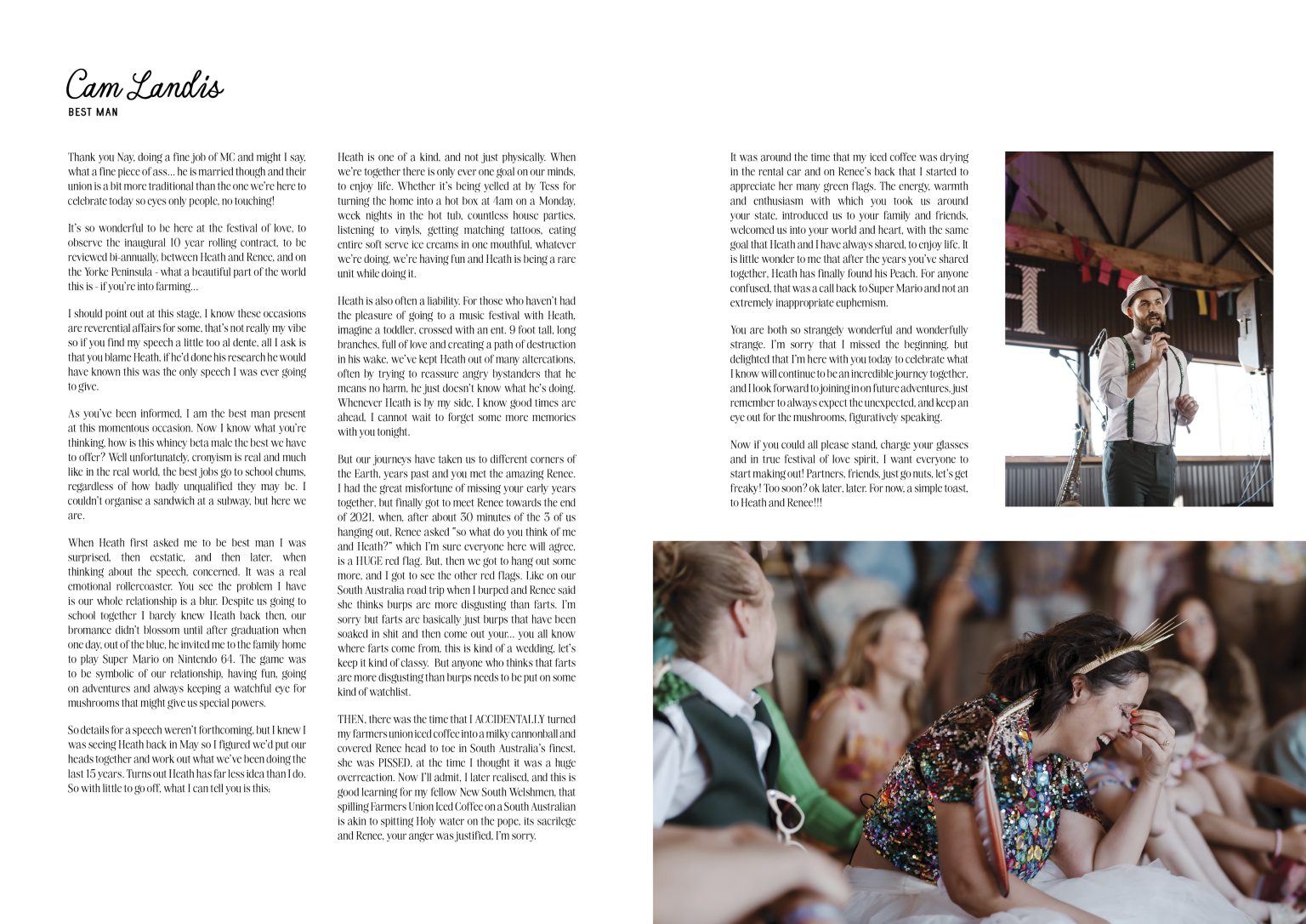 Geez did we have fun designing this magazine for them. We were presented with so many great images by their photographer to create one of our all time favourite magazines. The colour explosion, the storytelling, the couple and guests truly having a great time, and the written content we were provided to include throughout the design, has made this wedding magazine truly unforgettable in our eyes.