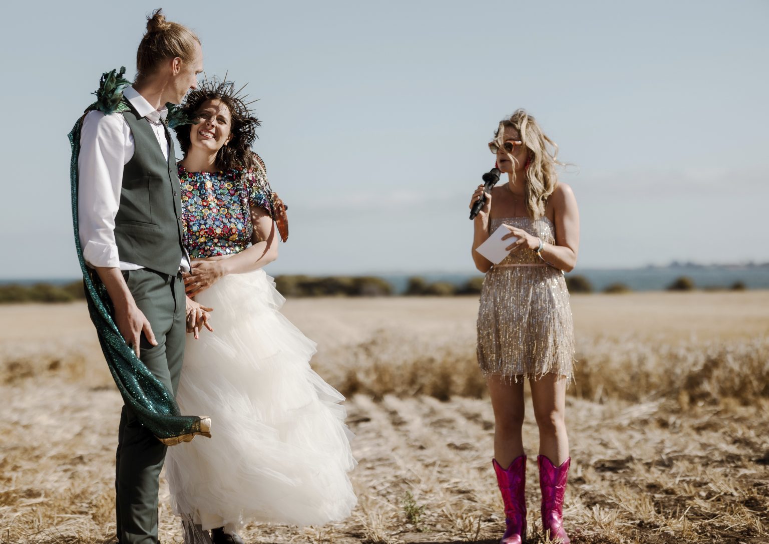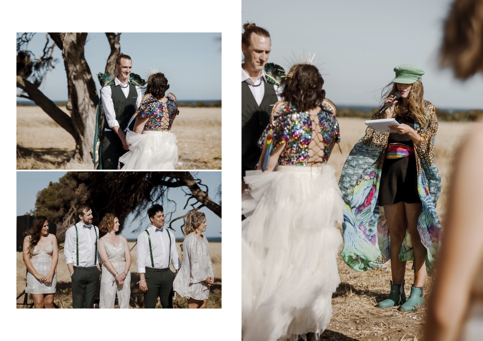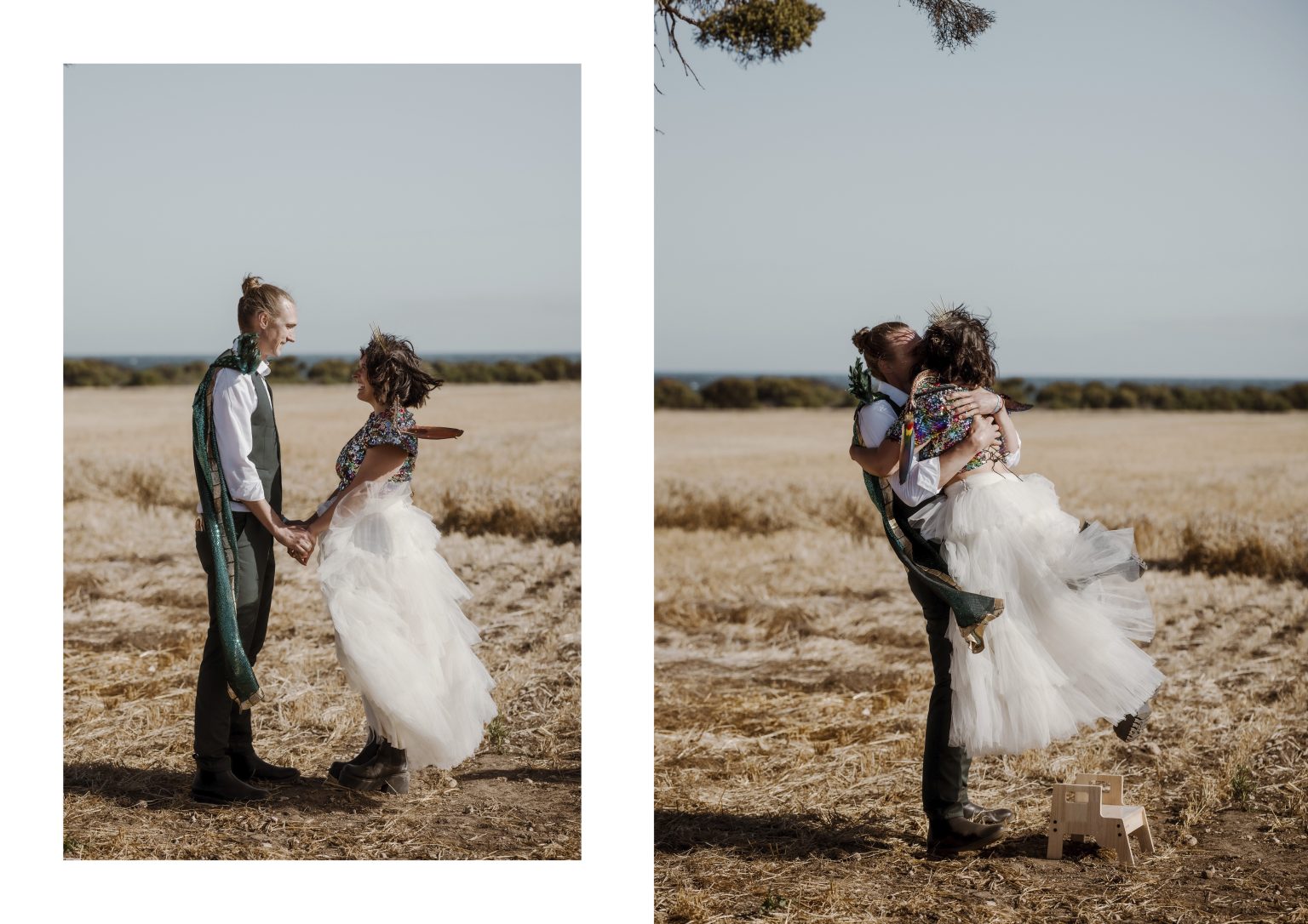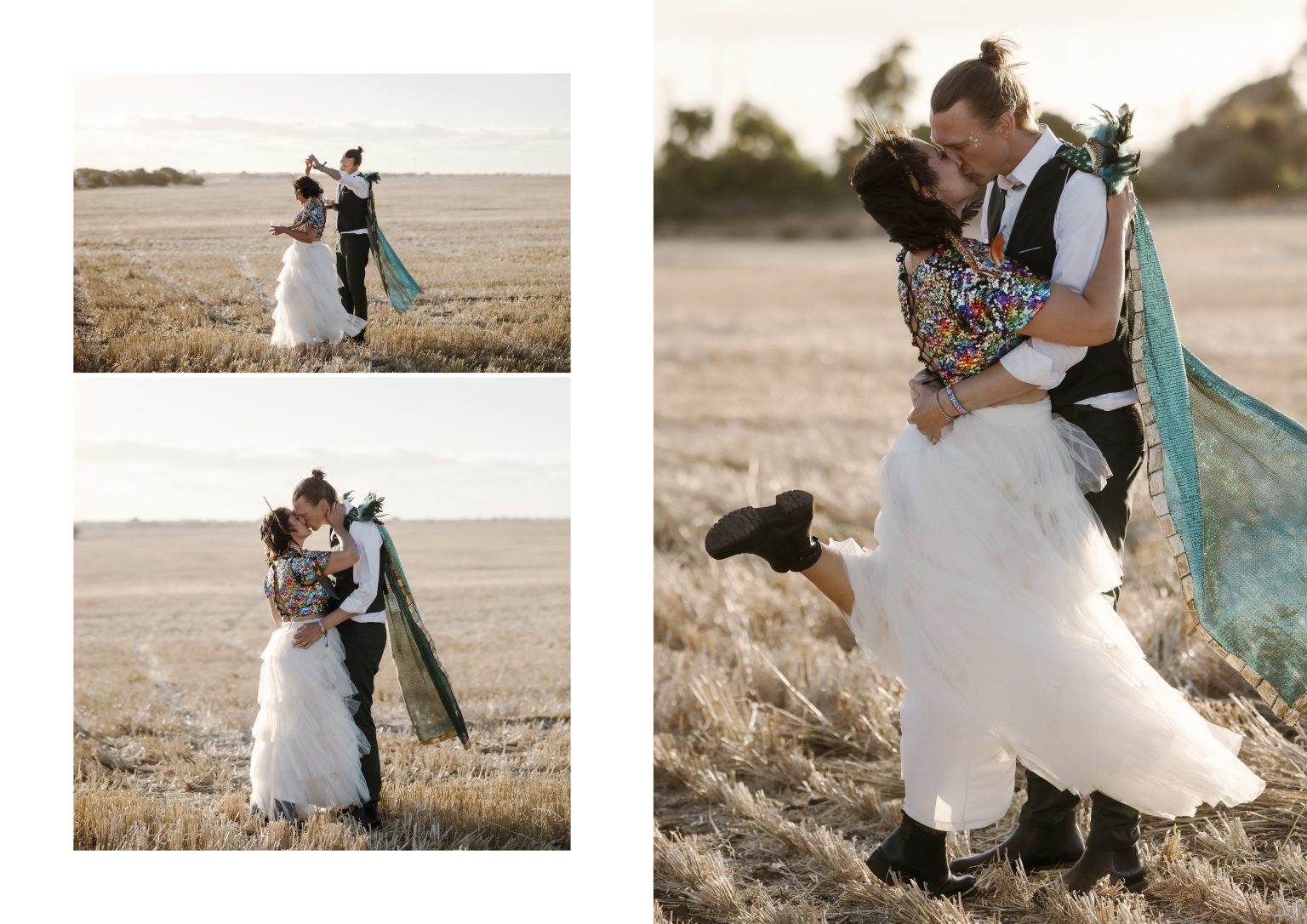 Renee & Heath planned their wedding around an entire weekend to create their Festival of Love on a family-owned wheat farm, three hours south of Adelaide on the Yorke Peninsula in South Australia. A fun, colourful unconventional wedding and we are here for it!!!