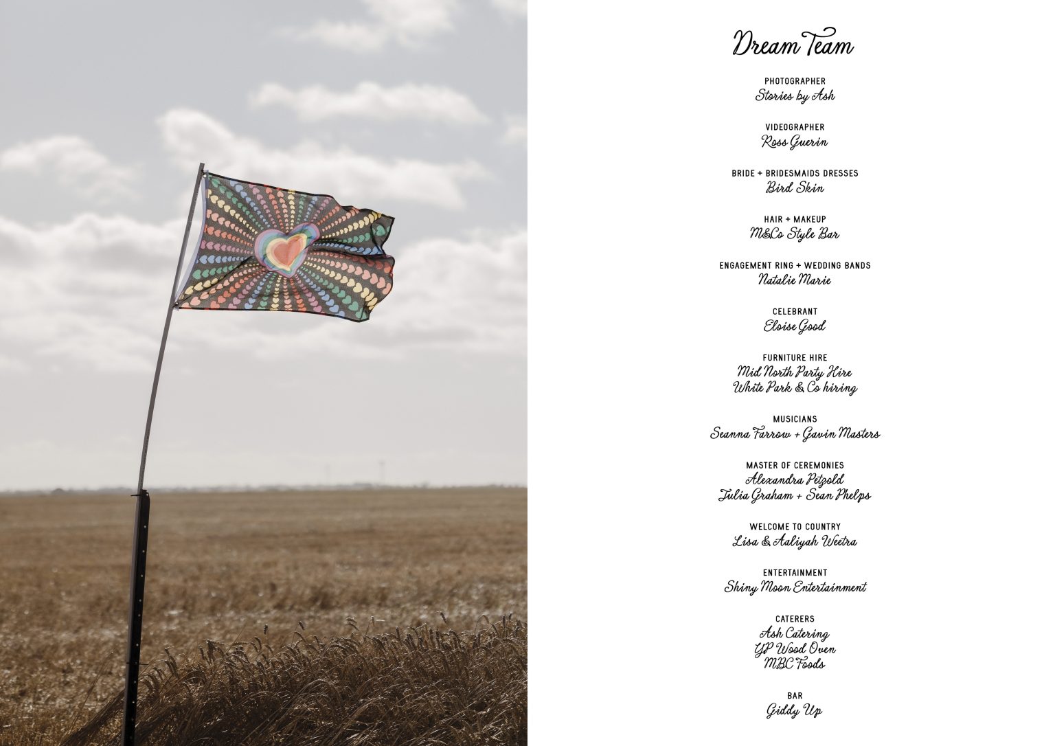 Location: Yorke Peninsula SA / Photographer: Stories by Ash / Film: Ross Guerin Video / Music : Shiny Moon Entertainment & Seanna Music / Coordination: Bronnie Searle / Celebrant: Eloise the Celebrant / Bar: Giddy Up Bar / Catering: YP Wood Fired Pizza, MBC Foods, Ash Catering / Hire: Mid North Party Hire & White Park & Co / Rings: Natalie Marie Jewellery / Makeup & Hair: M&Co Style Bar