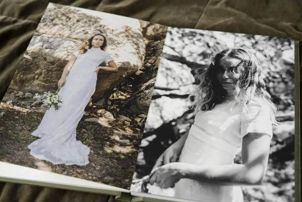 Let’s talk about what’s inside. Our fine art matte paper is something you have to feel to believe. Thick, luxurious, and smooth, each page gives your images a timeless, gallery-quality finish. Your photographer’s work deserves to be printed in a way that does it justice – no gloss, no glare, just rich colours and dreamy tones that leap off the page.