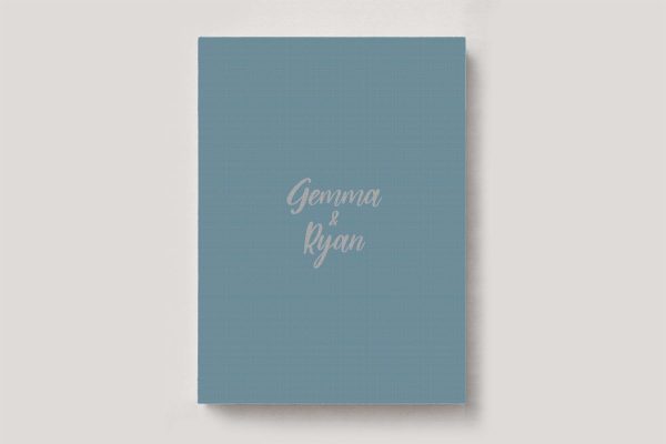 The cover design is stamped in your choice of a colour foil or blind (clear) debossing.  The stamp size is either up to 6×2 inch rectangle or 4×4 inch square. Our designer will present you with some design options from our Standard Photo Album Cover Design Templates for consideration during the design process.