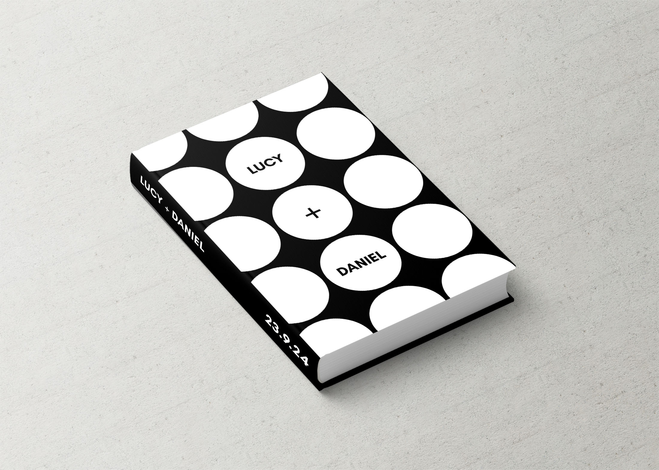 From our curated collection of luxe wedding albums and unique colourful wedding albums, this bold polka dot cover design features simple typography, in a black and white colour palette with a minimalist aesthetic. Create an unforgettable photo album to showcase your wedding photos. A stylish addition to add to your coffee table book collection, but this one is personal.
