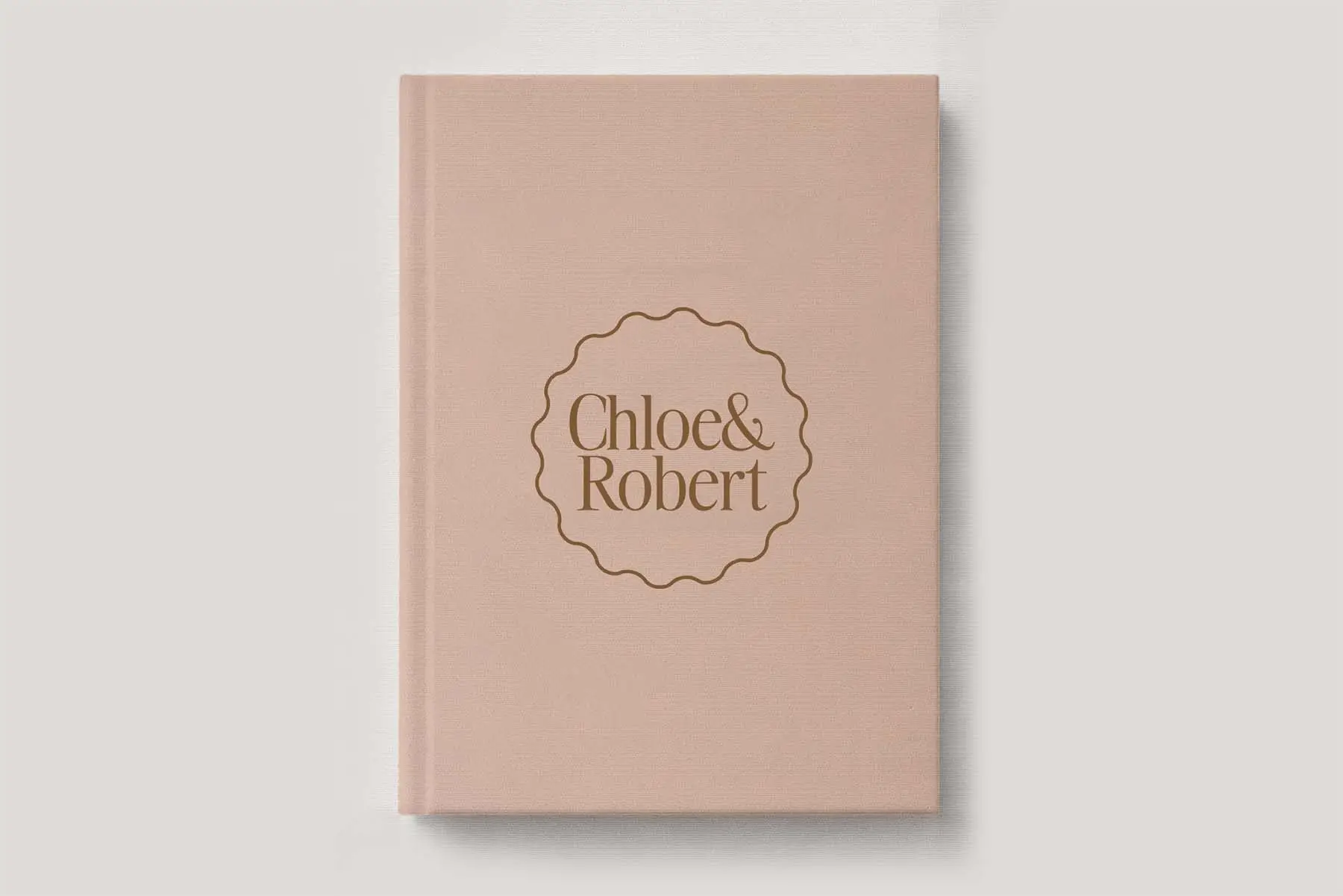 Luxe Wedding Photo Album with creative colour cover design in peachy and desert tones
