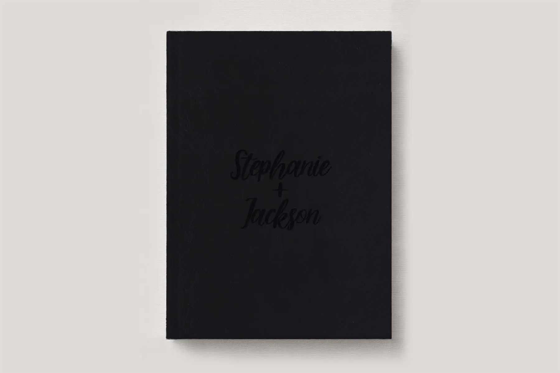 Fashion Series Wedding Album Black Premium Leather Cover with White Bold Typography