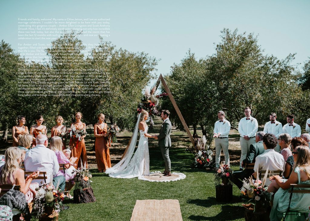A simple ceremony that captured the essence of Amber & Scott’s love story and wedding day at the iconic Geelong winery & events venue just an hour outside of Melbourne, this Mt Duneed Estate wedding unfolds over the pages of a custom wedding magazine.
