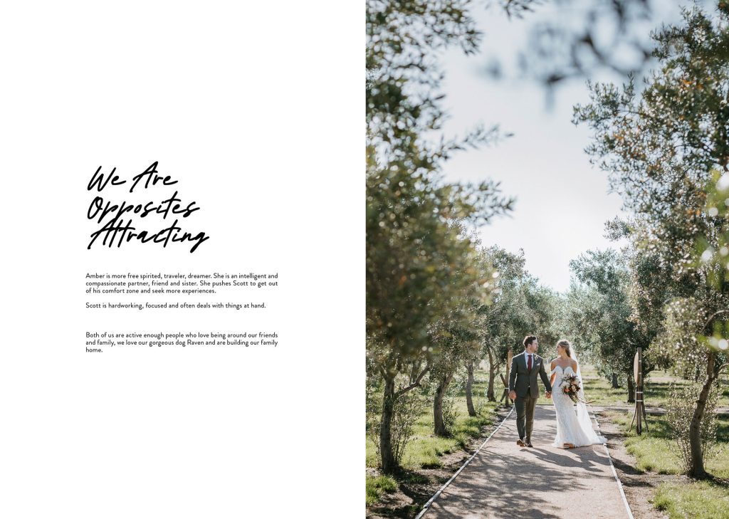 Don’t worry about having to create the wedding magazine yourself. Our Done-for-you design service means we do all the heavy lifting of carefully selecting photos from your entire photo gallery to a more manageable quantity to begin the design process. From their we design story-driven layouts to best tell your wedding day love story.