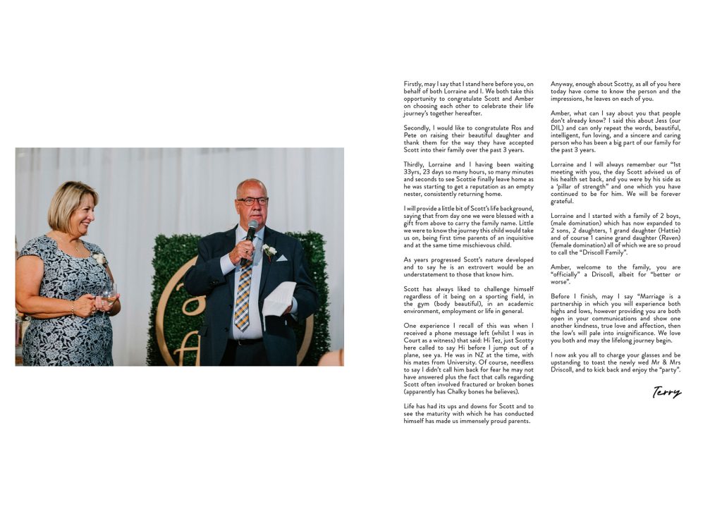 The concept behind the Wedding Magazine was to be able to firstly include a lot more photos than your traditional wedding album, but to also be able to incorporate written content and for that written content to be laid out by a graphic designer had touched each page as an editorial piece, producing a professionally designed publication.