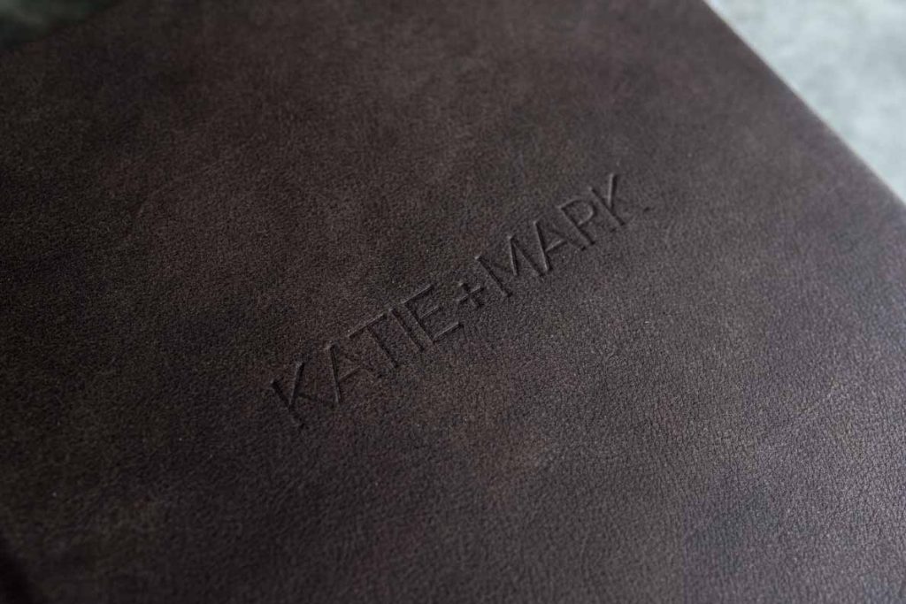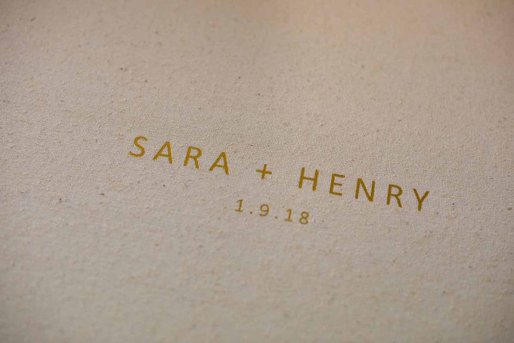 Stamp your names, your initials, wedding date or any words on the front cover as well as the spine of the leather and fabric covers.